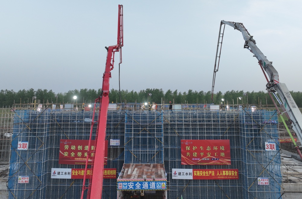4月14日凌晨4時(shí)18分,隨著最后一方混凝土順利入模,華陽(yáng)河項(xiàng)目程營(yíng)進(jìn)洪閘第三聯(lián)閘室墩墻(含胸墻、啟閉機(jī)梁板、上下游牛腿等)歷經(jīng)19個(gè)小時(shí)連續(xù)奮戰(zhàn),圓滿完成澆筑任務(wù)。