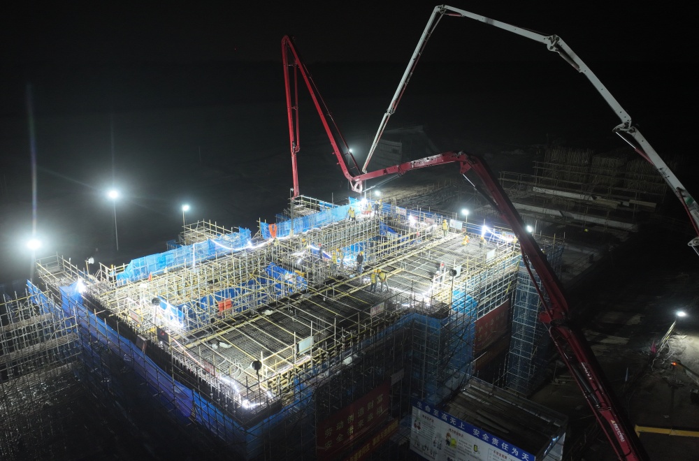 項(xiàng)目團(tuán)隊(duì)充分總結(jié)前三聯(lián)墩墻施工經(jīng)驗(yàn),持續(xù)優(yōu)化施工組織,日夜兼程投入到建設(shè)中。在管理人員與施工人員配合默契下,本次第三聯(lián)僅用19個(gè)小時(shí),較第一次閘室墩墻澆筑縮短了7個(gè)小時(shí),澆筑效率邁上新臺(tái)階。